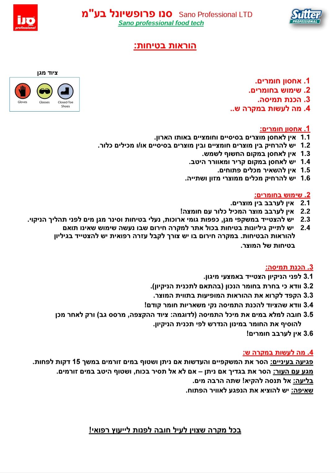הוראות בטיחות.